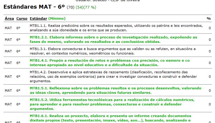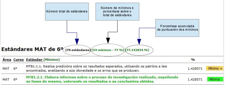 - O número de estándares que se concretaron como mínimos e a porcentaxe que representan sobre o total de estándares.