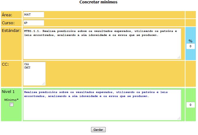 Se consideramos que o texto que aparece no apartado Nivel 1 é correcto como concreción do mínimo, activamos a casiña de chequeo Mínimo e gardamos.