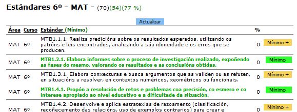 Se o mínimo para un estándar xa está concretado, este aparecerá de cor verde e o botón que o acompaña tamén apareceré en verde.